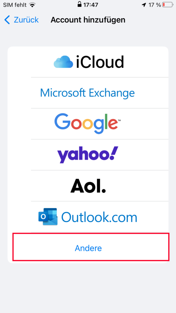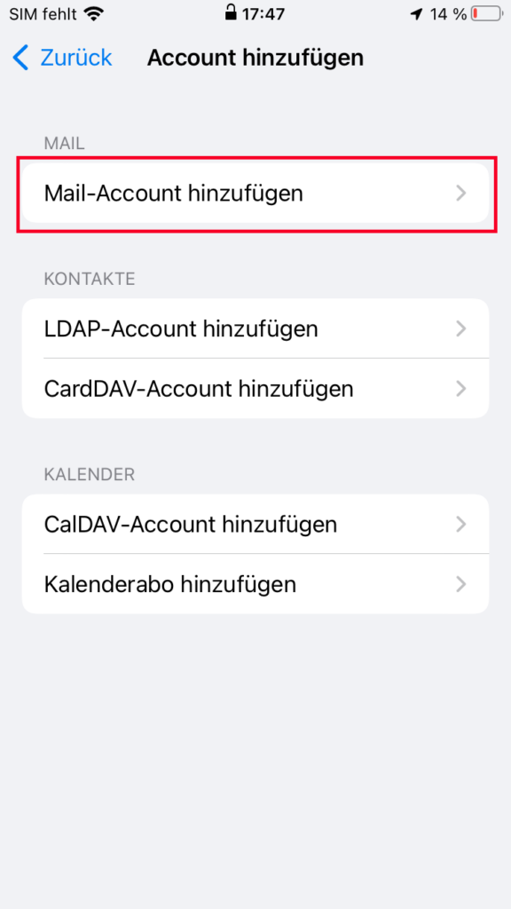 Schritt 6: Tippen Sie auf „Mail-Account hinzufügen“.